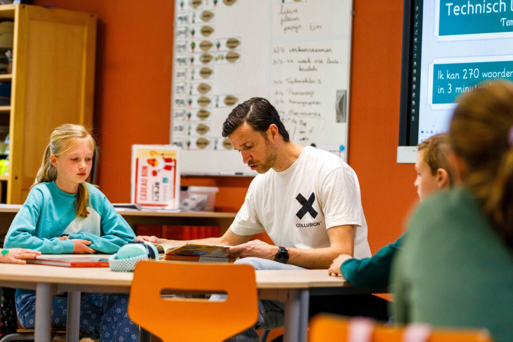 Er wordt binnen de verschillende lagen van onze school samengewerkt. We leren van en met elkaar door kennis en ervaringen uit te wisselen, de professionele dialoog te voeren, gezamenlijk te reflecteren, elkaars lessen te bezoeken en elkaar feedback te geven. Het open gebouw ondersteunt deze samenwerking. Dat wat we doen is écht zichtbaar, meetbaar en merkbaar.